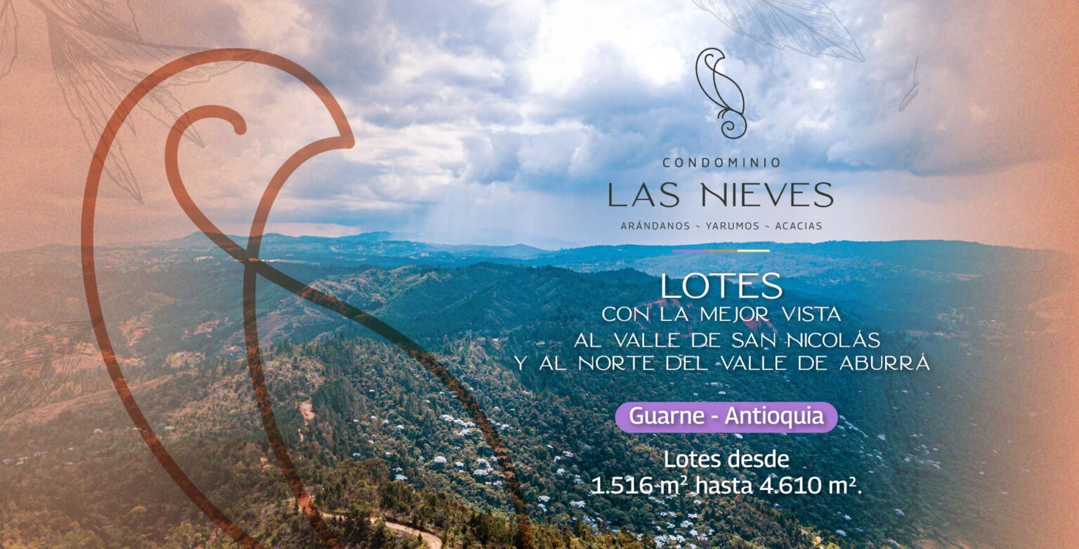 Condominio Las Nieves se encuentra ubicado en una de las zonas con mayor potencial de Guarne – Sector La Pastorcita, a solo 2.1 kilómetros de la Autopista Medellín – Bogotá.